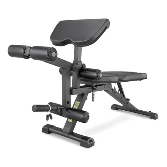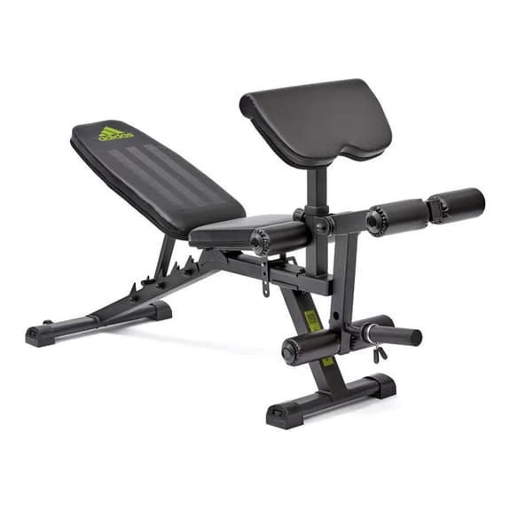 The adidas Performance Training multi-station bench features six levels of position adjustment and a removable preacher pad, the Performance training bench adapts to compound and isolated movements. Ideal for upper and lower body training, the leg developer with plate works the quads and hamstrings with its curl and extension functionality. Made of solid steel with thick foam padding, the bench combines comfort with stability for maximum performance. Equipped with built-in wheels for easy positioning, the training bench offers all the tools for your strength regimen.