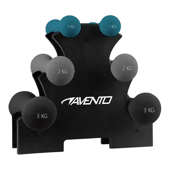 The Avento dumbbell set consists of a storage rack and 6 dumbbells: 2 x 1 kg, 2 x 2 kg and 2 x 3 kg so you can do a varied workout that exercises all your muscles separately. The bar holder is made of plastic and is designed to store all the dumbbells in the set. The dumbbells are made of steel with a comfortable PU coating that provides extra grip and protection from metal. The anatomical shape ensures that the weights are comfortably in your hand and do not slip when you leave them
