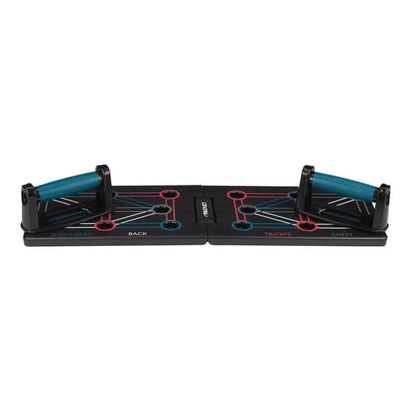 The Avento Push Up Table handles consist of a base plate with 8 holes on both sides for various exercises and a double handle. It is portable, foldable and easy to store.