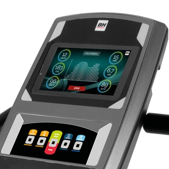The BH Fitness FDC19 TFT elliptical trainer combines the advantages of the efficient and demanding Front Drive workout with a reinforced frame for larger users. This elliptical is designed to withstand intensive use, and features Touch&Fun technology that will allow you to entertain yourself while you train thanks to its interactivity and connectivity.