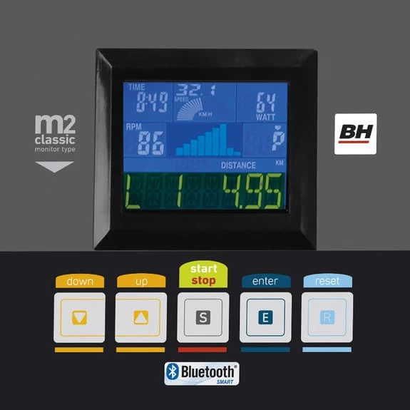 – Screen: Dual backlit display- Monitor with HIIT training by BH: No