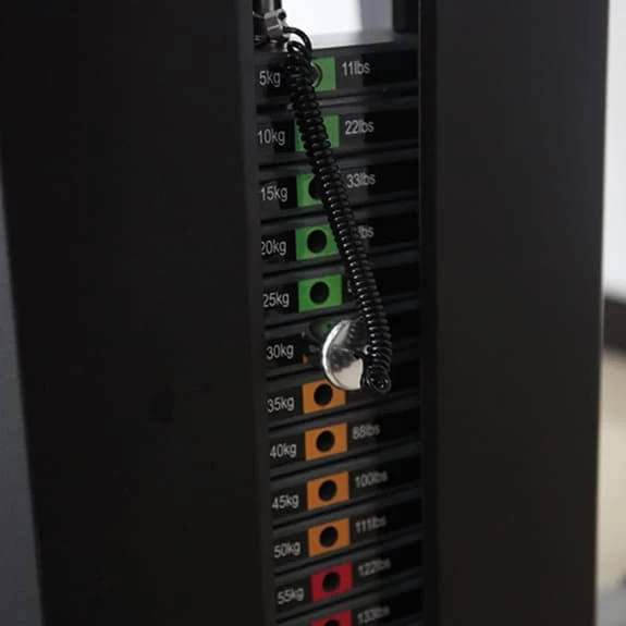 – Professional load system: Train like you would in a gym with its load system (70 kg for the upper body / 100 kg on the leg press) with a magnetized selector