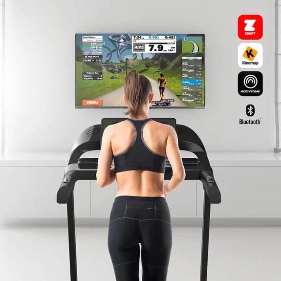 – Connectivity: The console incorporated in this treadmill implements Bluetooth 4.0 technology that allows it to connect with android and IOS devices and send workout data in real time to apps such as Mybodytone, Kinomap or Zwift among others