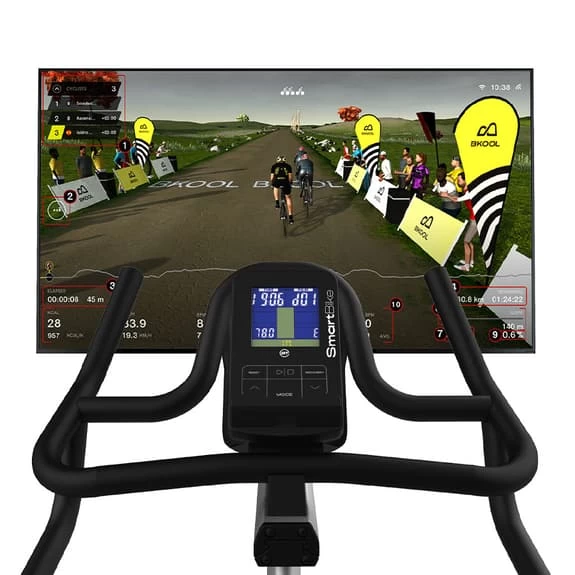 The console incorporated in this bike implements bluetooth 4.0 technology that allows it to connect with Android and IOS devices and send the data of the exercise session in real time to applications such as Zwift, Bkool, Mybodytone, Kinomap, among others. Interactive virtual ride simulation, push-button shifting simulation and ERG (target power training) training mode. It also allows you to link Bluetooth heart rate monitors Polar brand and compatible with Bluetooth 4.0