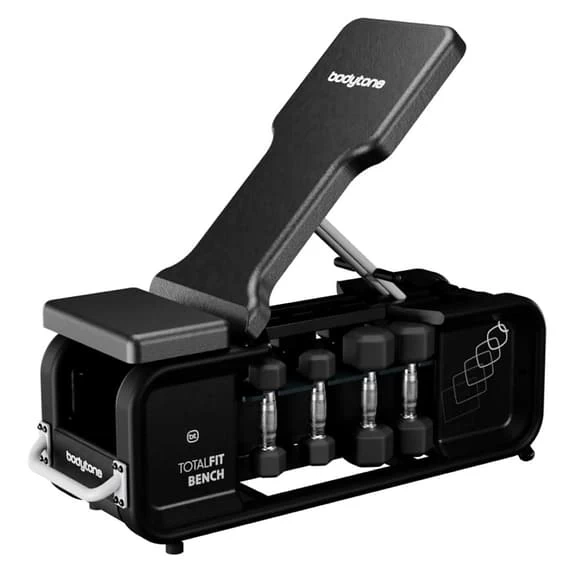 The Bodytone Total Fit Bench is a complete functional training machine that allows the user to perform hundreds of full body workouts. A bench with which you can exercise your body together with elastic bands, dumbbells and kettlebells in a minimum of space. With Total Fit Bench you can perform more than 200 exercises to reach your goal. It’s perfect for strengthening your core, increasing strength, flexibility and defining your abs and glutes.