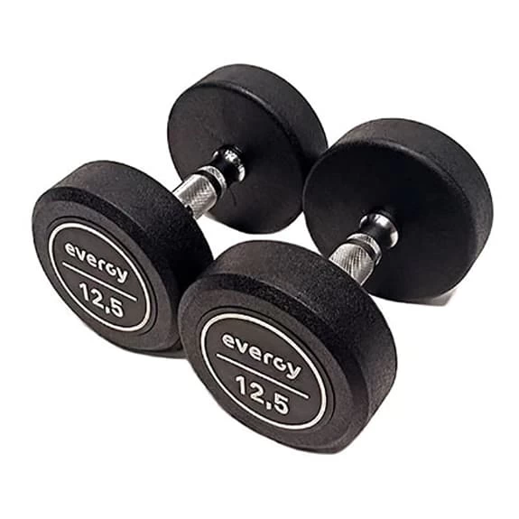 Evergy Fitness 2.5 kg rubber dumbbells allow you to work not only specific muscles but also more global movements of resistance and cardiorespiratory capacity. Evergy rubber dumbbells are the perfect equipment for a complete and progressive workout. You will be able to progressively increase weights, decreasing the risk of injury and also unilaterally, developing your balance, stability and increasing your muscle mass to a greater extent. The handle is made of 28 mm Hard Chrome steel with knurled knurling for an unbeatable grip. The body of the dumbbell is made of structural steel covered with rubber.