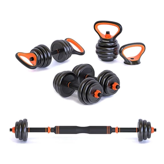 The FED Xiaomi 10kg barbell, discs and kettlebell kit includes several discs of different weights, with bars and kettlebell holders, allowing you to customise all your equipment. Dumbbells, kettlebells, barbells and push-up grips can be mounted. They connect to the Move It sensor (not included) which, thanks to its mobile App, allows complete monitoring of workouts, as well as an online exercise program. Its bars are covered with foam for a firm and comfortable grip. Includes ABS anti-slip grip and anti-slip threaded fasteners