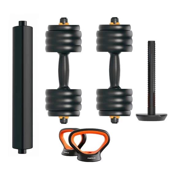 The FED Xiaomi V2 40 kg barbell, discs and kettlebell kit includes several discs of different weights, with bars and kettlebell holders, allowing you to customize all your equipment. Dumbbells, kettlebells, barbells and push-up grips can be mounted. They connect to the Move It sensor (not included) which, thanks to its mobile App, allows complete monitoring of workouts, as well as an online exercise program. Its bars are covered with foam for a firm and comfortable grip. Includes ABS anti-slip grip and anti-slip threaded fasteners