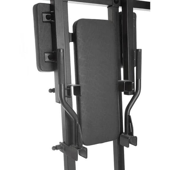 The Finnlo Autark 10.0 multi-gym has several independent, height-adjustable cable traction modules. Integrated weight bar, dip station, arm rest for abdominal training and pull-up bar. Includes adjustable weight bench with handles and transport wheels. The pulley slider is set to position 32 for unlimited exercises. 13 weight bar positions. Maximum strength of 100 kg (including additional weights).