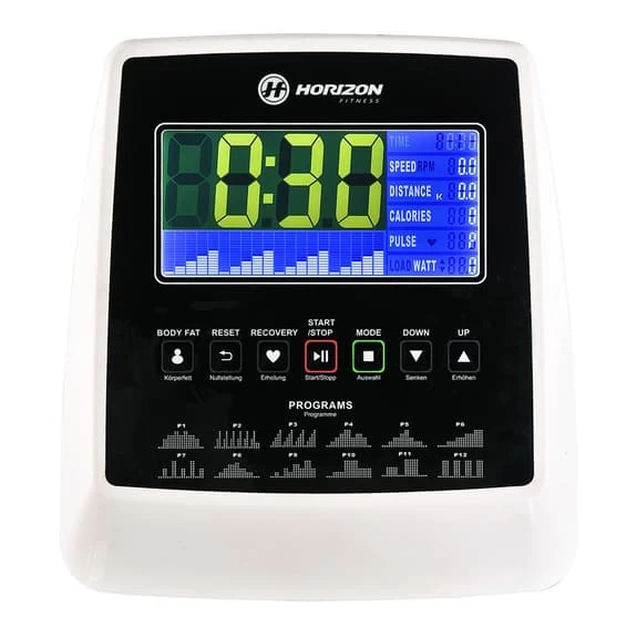 The Horizon Paros Pro has a 11 kg flywheel, 16 different programmes to suit your needs and goals, and a back-lit screen showing the time, speed, distance, calories, pulse and other information.
