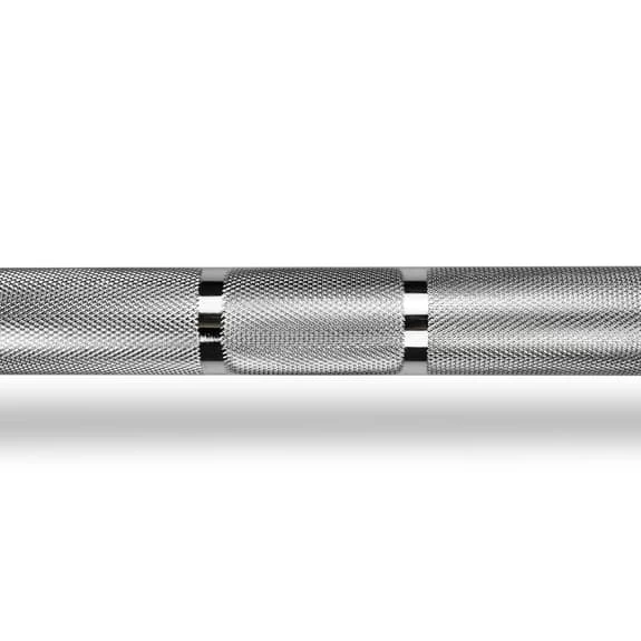 The Leffort 220 cm Olympic bar is designed specifically for weightlifting or powerlifting work, following the competition and training standards in terms of size and weight. Thanks to the 4 ball bearings, the ends rotate freely in relation to the grip to ensure smooth movement and prevent possible injuries to joints such as the wrist. It also has standard markings for measuring the width of the grip.