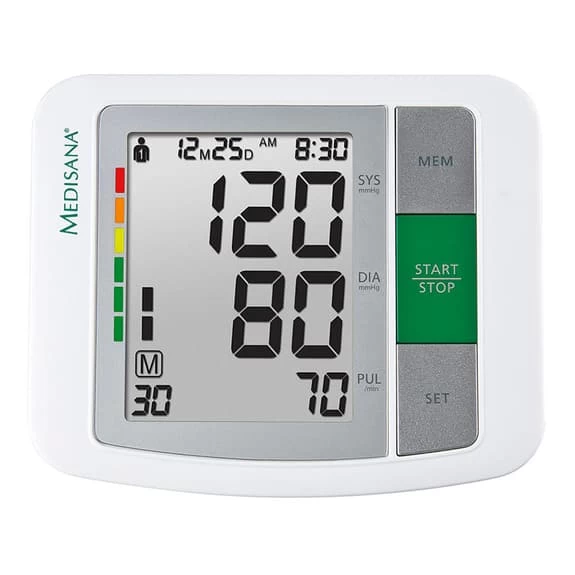 The Medisana BU-510 arm blood pressure monitor shows results through a colour code, known as traffic lights, which are in line with standards set out by the World Health Organisation (WHO). Designed with an especially large sleeve, between 22 and 36cm.