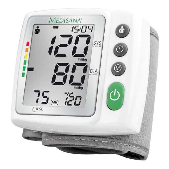 The Medisana BW 315 wrist blood pressure monitor displays results in large, easy-to-read characters. In addition, it calculates the average of the last three readings, which provides a good overview of your health status. It is not only its simple operation that distinguishes the BW 315 wrist blood pressure monitor. In addition, the measured values are classified according to a color scale (traffic light), in accordance with the standards of the World Health Organization. In this way, and thanks to the green, yellow or red classification, it is possible to see immediately if the readings are within or outside the normal range.
