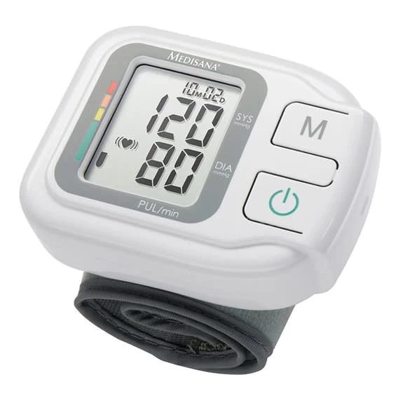The Medisana HGH wrist blood pressure monitor shows results through a colour code, known as traffic lights, which are in line with standards set out by the World Health Organisation (WHO).