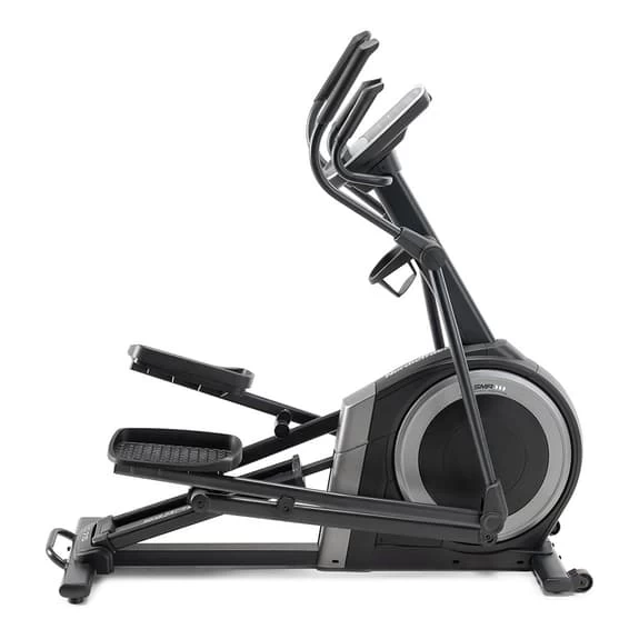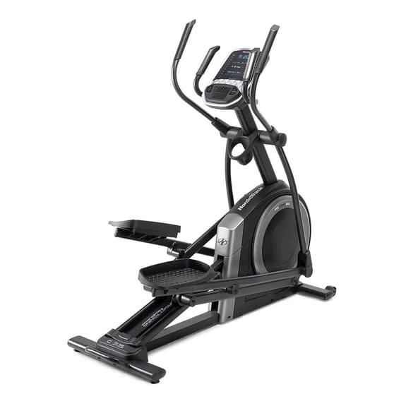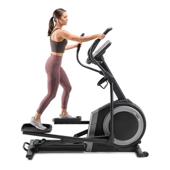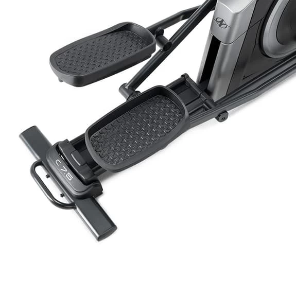 The NordicTrack C7.5 elliptical trainer features 22 resistance levels and 26 programs for a workout that is more comfortable and better adapted to your goals. The front wheel combined with the adjustable ramp will allow you to work more muscles and burn more calories than on a classic elliptical. You will be able to access over 400 preset training programs and practice your sessions all over the world. Discover a personalised fitness experience with iFit. You will receive advice on how to improve the quality of your sleep and nutrition from our team of experts. iFit Coach adapts intelligently and helps you reach your goals. Regulate your body temperature thanks to the fan that automatically adjusts its power according to the intensity of your workout. You can also adjust the fan manually with the knobs located on the console.