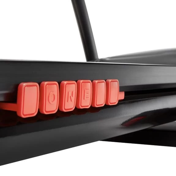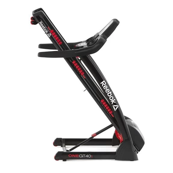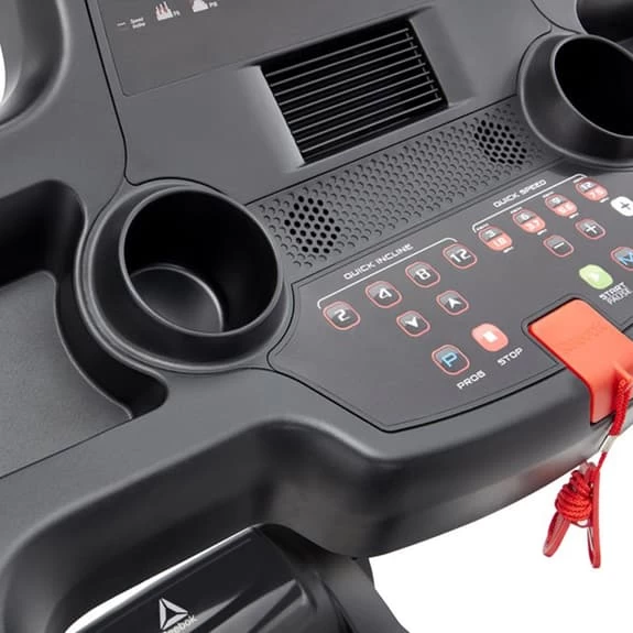 The Reebok GT40S treadmill helps you reach your goals with personalized cardio workouts at home. With ONE Series cushioning technology, the GT40S offers a softer, less abrasive running platform, alleviating impact on knees and ankles while minimizing noise for a less intrusive home run. With a powerful 2 HP motor at the core of the machine, the GT40S reaches a top speed of 16 km/h with 12 built-in power incline levels to boost your workouts with every run. With quick speed and tilt buttons on the handlebars, plus shortcut keys built into the console, you can make precise transitions throughout your session.