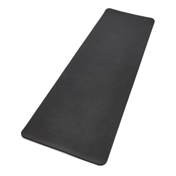 The Reebok Pilates 10mm mat offers a thicker base for a softer feel without compromising stability. Equipped with integrated grommets and a textured non-slip base, the mat stays rooted for stronger postures and is easy to store after training.