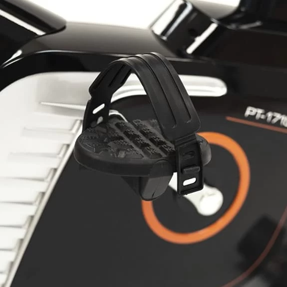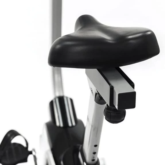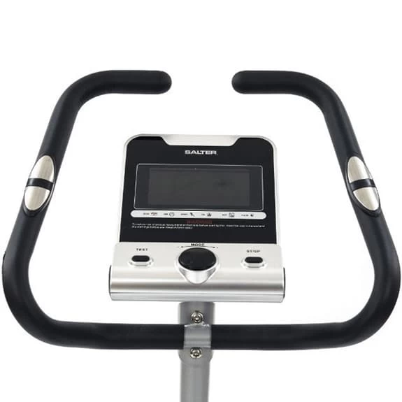 The Salter PT-1715 exercise bike is ideal for small spaces due to its small size. It also offers great features that allow an effective and comfortable work. It also has multiple ranges to adjust the working position to the needs of each user. The spacious and comfortable seat can be adjusted both horizontally and vertically to achieve the optimum working position according to the needs of each user. The ergonomic handlebar allows several grip positions increasing the working possibilities. The magnetic brake system offers high quality to the exercise and allows a smooth and totally silent work. In addition, this system requires no maintenance as there is no friction and therefore no wear. This model is equipped with a flywheel of inertia equivalent to 10 kg that generates a smooth and fluid movement. The pulse measurement is performed by contact sensors incorporated in the handlebars for a comfortable and immediate reading of the pulsations during the exercise. The monitor has a wireless capture system (radio frequency at 5kHz) to comfortably control the pulsations in high intensity exercises. The transmitter belt is optional and not included. LCD monitor that provides constant information of the basic indicators of the exercise: Time, Speed, Distance, Calories and Pulse. The monitor is very easy to use and allows multiple workout options. The user can work in Manual mode or access any of the 6 Preset Programs by choosing the training profile and work intensity required (16 intensity levels). There is also the User Program option to design your own training program. Other options on the monitor are the 4 HRC programs (heart rate control) that automatically control exercise intensity and maintain effort within the selected limits and the BODY-FAT program that displays body mass index. The monitor has also got a tablet or mobile device support. Stabilizers in the base to adjust the machine to the irregularities of the ground offering a total stability. Built-in wheels in the base facilitate movement of the machine.
