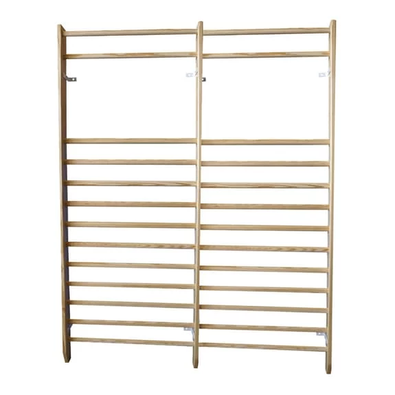 The Softee backrests are made entirely of Melis pine wood with horizontal oval slats of section 32 x 27 mm, 13 slats at an equidistant distance of 11 cm, except for the upper gap of the second and third slat which is 55 cm. All of them are connected to vertical crossbeams with a section of 13x 3.5 cm. Comes with screws and glue to tie the strips and the crossbars and metal brackets and screws for fixing to the wall (4 brackets the simple ones and 8 the movable ones)