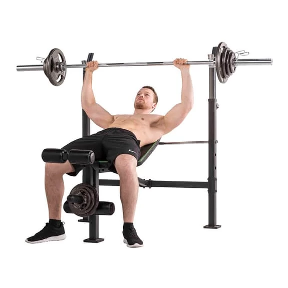 The Tunturi WB60 Olympic Width Weight bench allows the storage of Olympic and standard discs.
