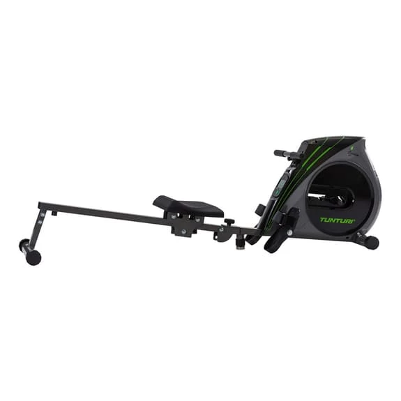 The Tunturi Fit R20 rowing machine has 4 levels of resistance, a large and comfortable seat. It folds up thus taking up minimal space. And it also has a monitor that shows the results of your training.