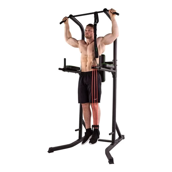 The Tunturi Pull-Up stretch tube can be adjusted to three different resistance levels. If you use the three red tubes, the resistance is great and the exercise is the least intense. The exercise is intensified by removing the tubes, which reduces resistance. You can attach the straps to various fixed points, for example a loose pull-up bar, the pull-up bar of a strength station or even a tree branch.