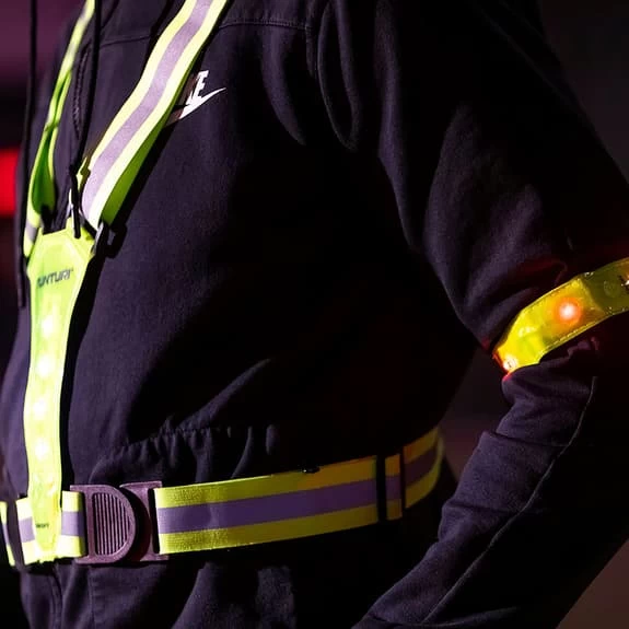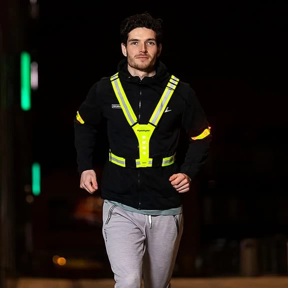 The Tunturi safety strap is a good accessory for outdoor sports activities. For example, for running and walking. The bracelet ensures that you are clearly visible to others, both day and night. This is due to the bright yellow reflective material and the 4 red LED lights. These bright lights may flicker or come on constantly. The safety strap is easy to attach using the hook-and-loop fastener on the back.